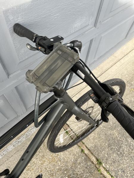 ライト、チェーンロック、スマホホルダー付きです。