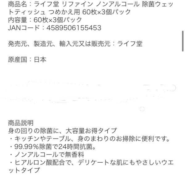 ・リファインの除菌99.9パーセント ノンアルコールウェットティッシュ 24時間抗菌