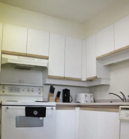 Kitchen with rice cooker, microwave, kettle