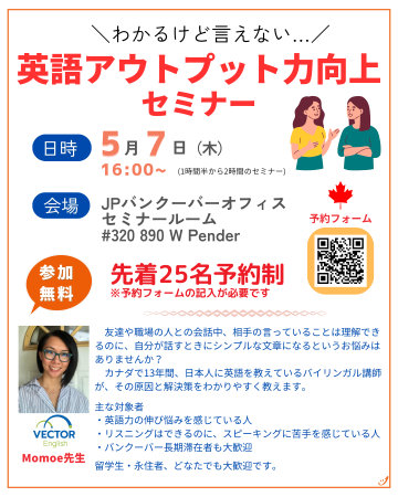 ■セミナー名:「わかるけど言えない 英語アウトプット力向上セミナー」(先着25名)